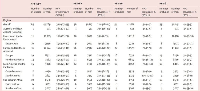 Près d'un homme sur trois dans le monde est donc infecté par au moins un type de HPV génital et environ un homme sur cinq est infecté par un ou plusieurs types de HR-HPV.